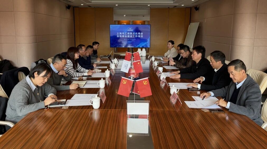 2026年1月15日下午,上海市工商联党组成员、副主席封丹华莅临文化商会,调研商会建设工作。市工商联商会和法律服务部部长付凯、副部长彭飞等陪同调研。商会会长杨震华,副会长庄春强、张强、康正宁,专职秘书长张葆葆,监事长张光齐参加调研。