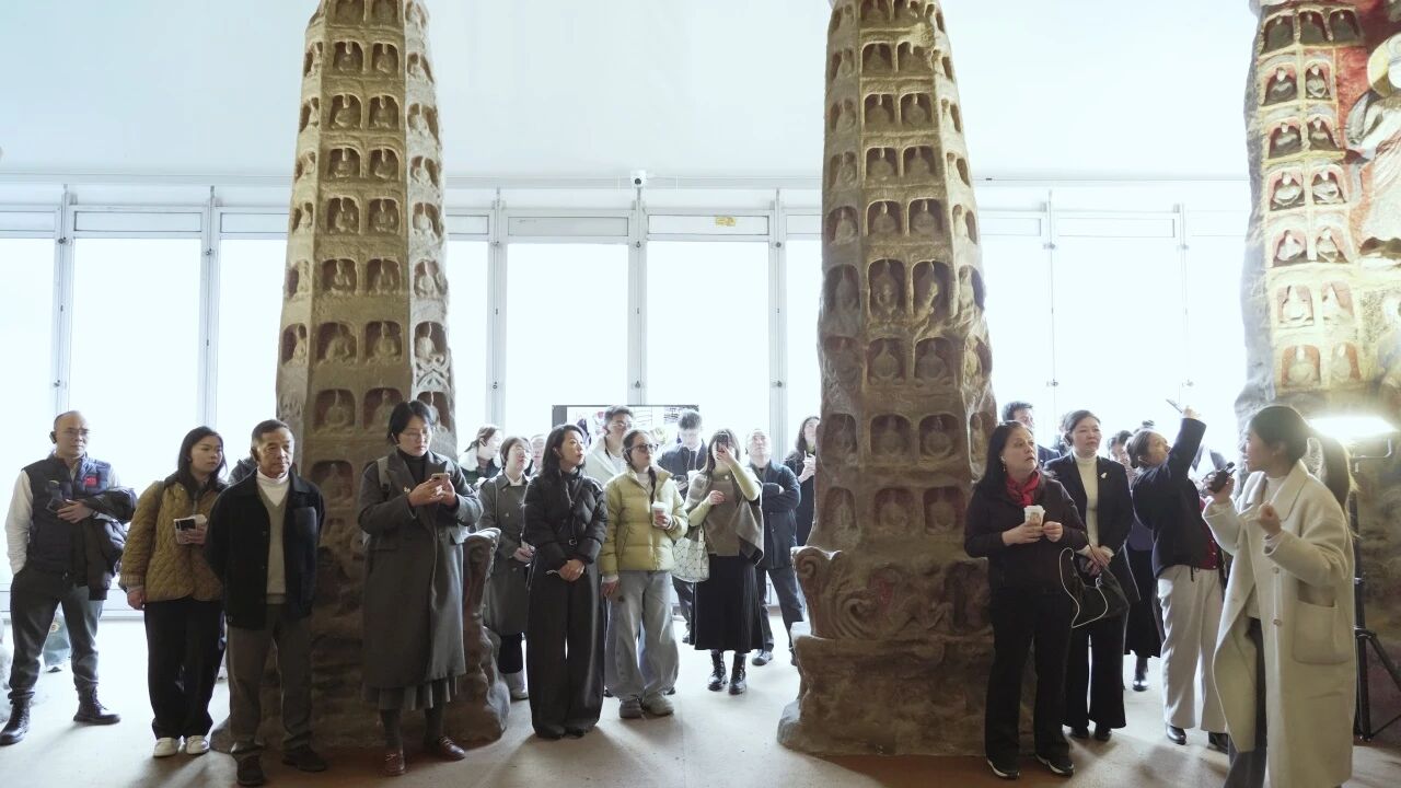 在趣看美术馆,企业家一行欣赏了《云海相望——云冈石窟艺术特展》。展览以大规模、高精度复原及数字化形式集中呈现千年云冈石窟,汇聚云冈文物、3D复原石窟和当代艺术作品。
