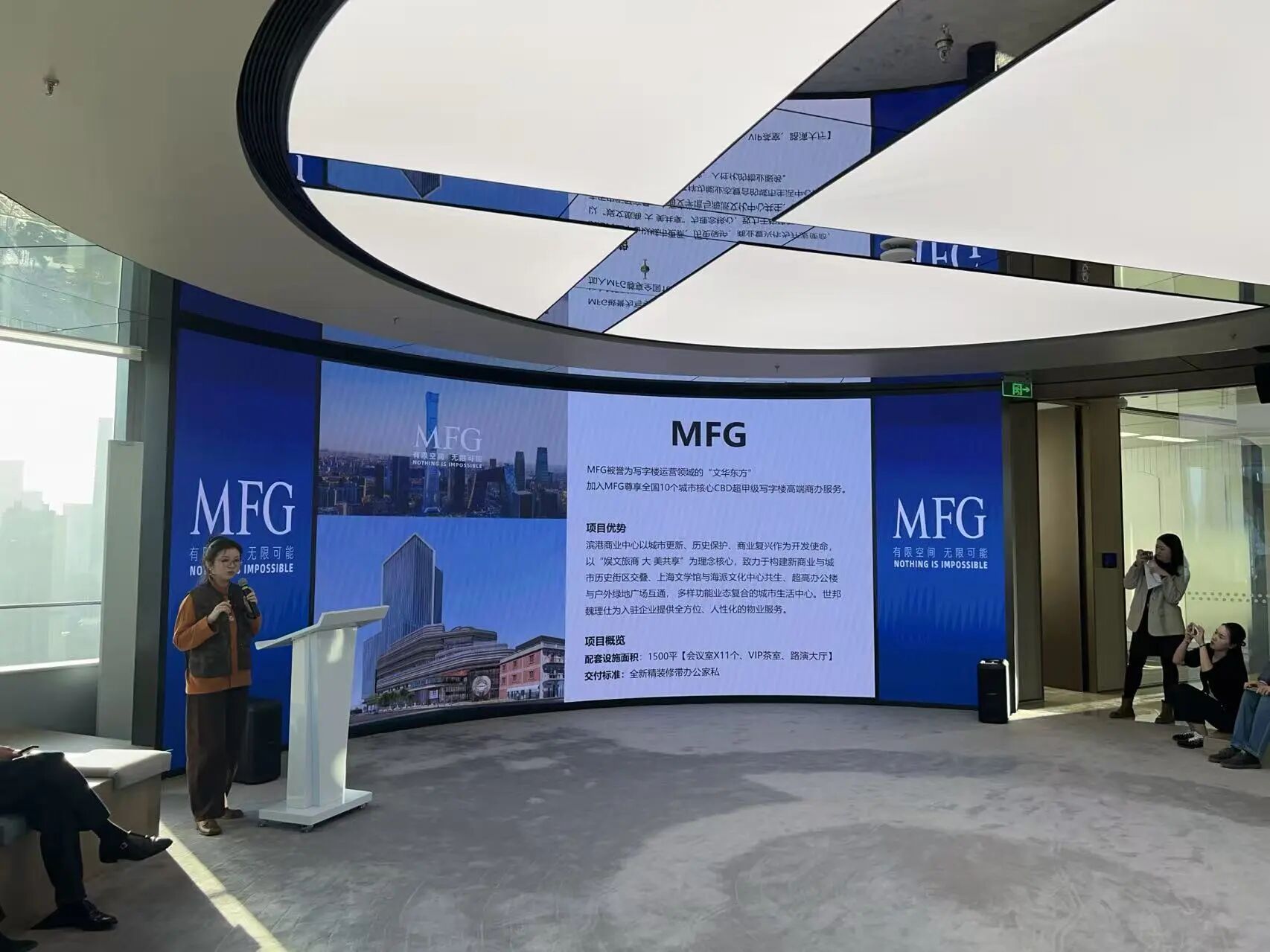 在分享交流环节,崇邦集团有关部门负责人对企业家们走进今潮8弄表示欢迎。她介绍了今潮8弄的历史文化特色和城市更新标杆的定位以及配套设施的完善性,包括艺术空间、体育业态和高端写字楼等服务。分享了百年石库门建筑群的保护性开发以及文旅商融合的创新模式。