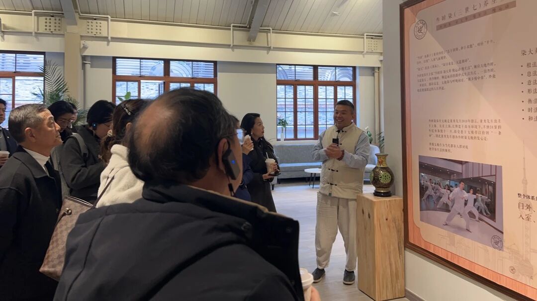 在三世七古法太极拳馆,企业家一行参观了门店的环境以及专业教练的教学演示,听取了门店负责人对三世七古法太极的介绍及其所蕴含的“天人合一”的养生智慧。